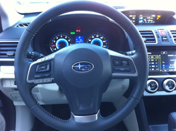 The sporty instrument panel and 3-spoke steering wheel are augmented in all XV Crosstrek models by a multi-function display with a trip computer located in the center of the dashboard. Soft-touch materials for the dashboard, door trim and center console armrest provide a high-quality feel. Front seats are optimized for a rear-end collision and feature tilt-adjustable head restraints for comfort. Large door pockets can hold plastic drink bottles and maps. Numerous compartments located in and around the center console hold all manner of today's personal items, such as phones, USB drives and MP3 players.