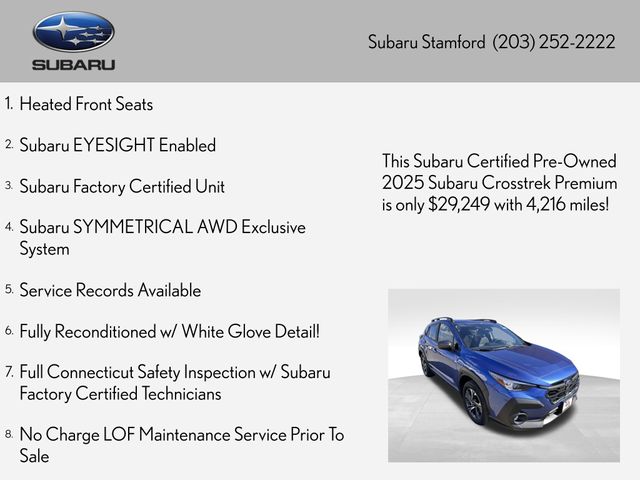 View this 2025 Subaru Crosstrek SUV Premium for sale at Subaru Stamford in Stamford CT.